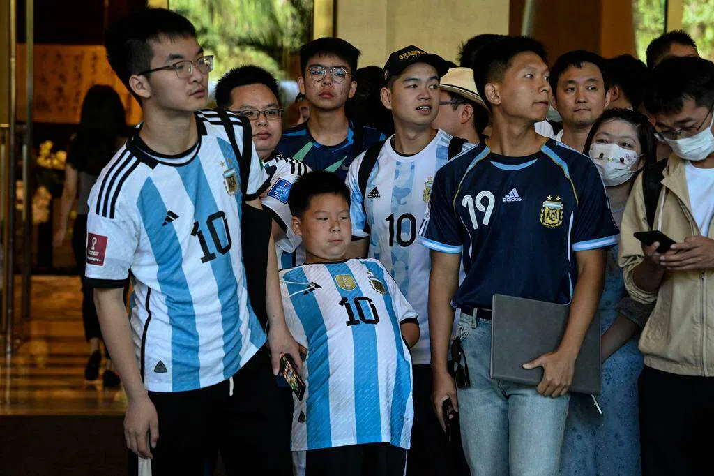 梅西在星期六上午9时30分搭乘私人飞机,和德保罗(De Paul)、迪马利亚(Di Maria)、恩佐·费尔南德斯(Enzo Fernandez)、帕雷德斯(Paredes)等队友一同在北京降落。他们直到中午12时才走出机场,根据社交媒体消息,梅西和队友因为事先没有办理签证,须要在机场办理手续,耽搁了一段时间。