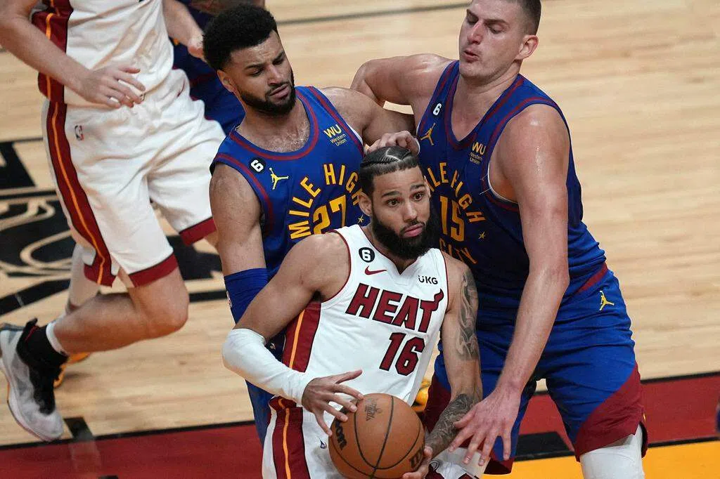 金块球员在身高方面全部占优势,而热浪因为阵容原因,除中锋位置外,很难在场上保持第二个高点。这就使得热浪在防守中顾此失彼。除超级中锋约基奇(Jokic)仍旧是场上核心,得到23分12篮板外,金块身高2米03的大前锋阿隆·戈登(Aaron Gordon)这场也发挥了关键作用,得到全场最高的27分七篮板六助攻。