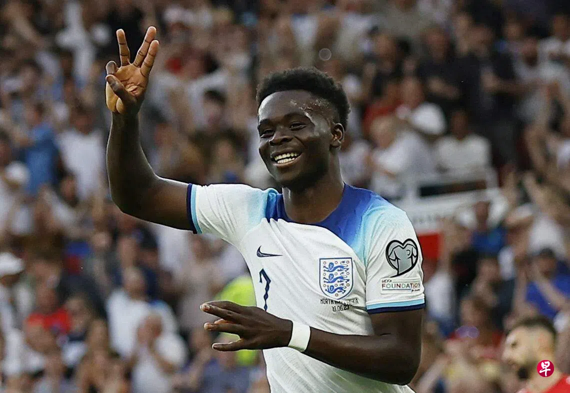 萨卡首次在英格兰队完成帽子戏法