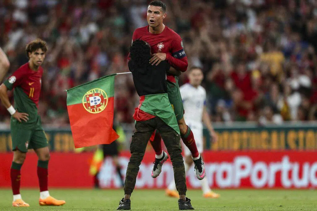 当时,罗纳尔多接到伊纳西奥(Inacio)门前的头球摆渡,凌空垫射破门。进球原本被判越位,不过在录像助理裁判(VAR)介入后证实进球有效。这是帅罗的第123个国家队进球,同样还在刷新全球纪录。