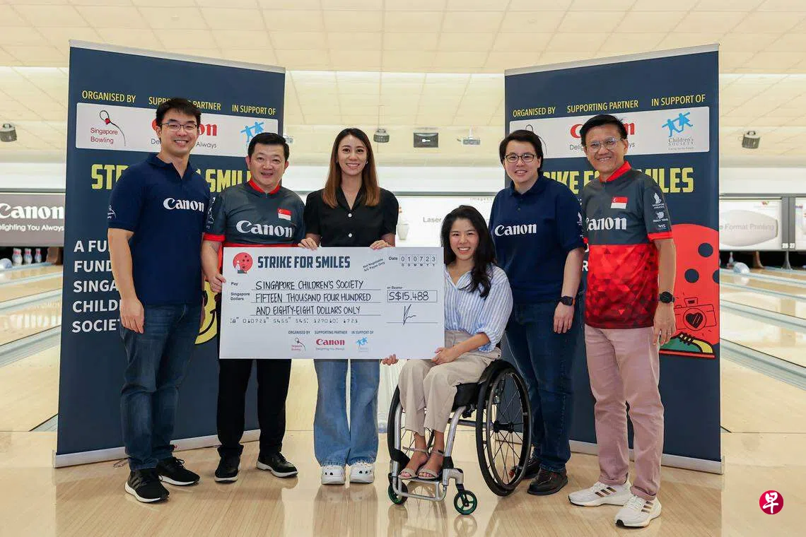 新加坡保龄球总会与佳能(Canon)联办保龄球慈善赛,为新加披儿童会筹得1万5488元。