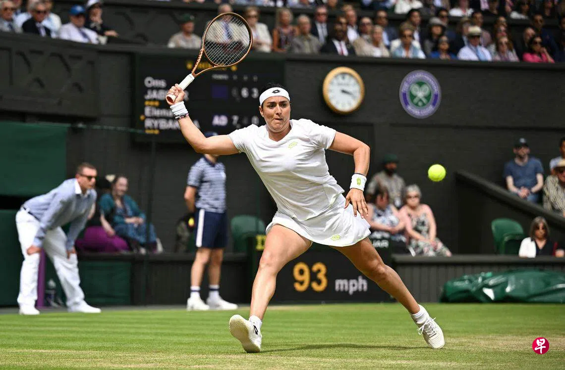 (伦敦综合电)温布登网球锦标赛本地时间星期三(7月12日)晚上的八强赛重演上届女单决赛,突尼斯六号种子昂斯·加博尔逆转战胜去年夺冠的三号种子、哈萨克斯坦选手埃琳娜·雷巴金娜,闯入半决赛,成功复仇。