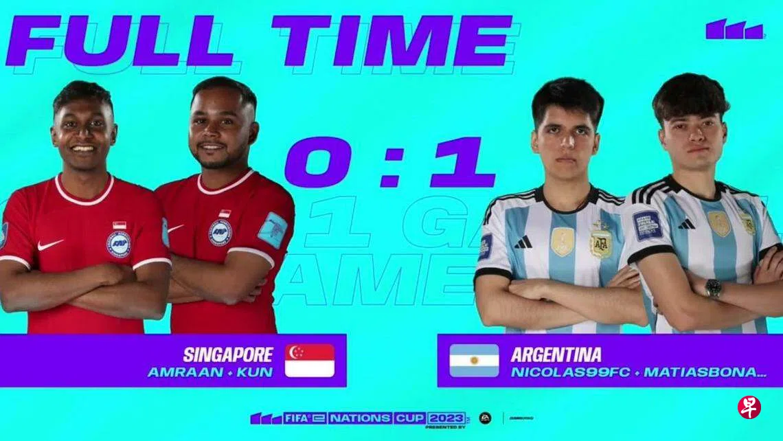 新加坡电子竞技队本地时间星期四(7月13日)晚上在沙特阿拉伯举行的国际足联电竞国家杯(FIFAe Nations Cup)足球赛事中,经两回合比拼0比1不敌实力强大的阿根廷,止步16强,但成绩已优于去年首次参赛时。