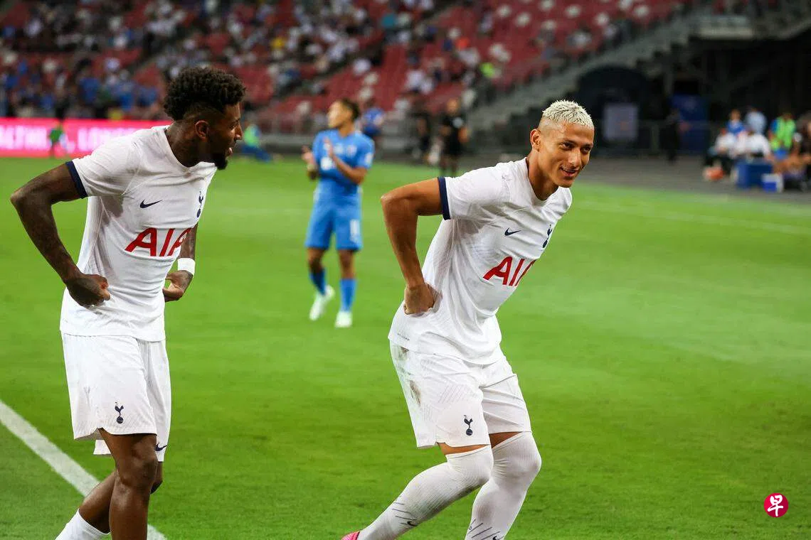 英超劲旅“热刺”托特纳姆(Tottenham)星期三(7月26日)在国家体育场进行的新加坡足球嘉年华“老虎杯”季前热身赛,虽然被我国球队狮城水手(Lion City Sailors)率先破门,但凭借理查利森(Richarlison)下半场上演帽子戏法,以5比1轻取对手。