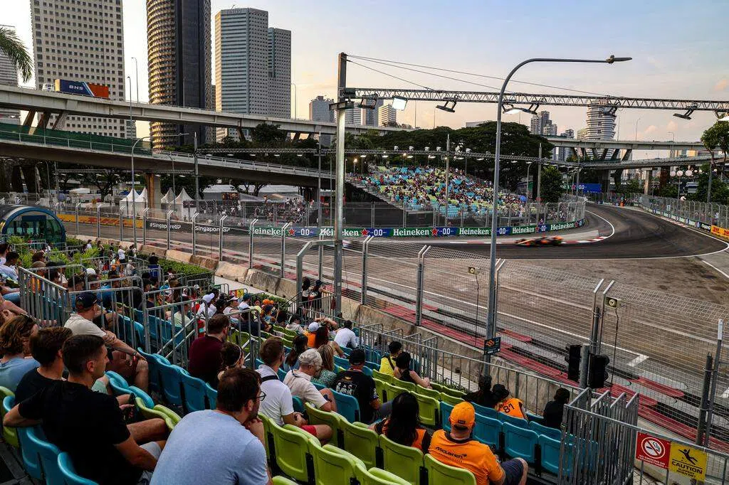 此起彼伏的欢呼、震耳欲聋的引擎、轮胎摩擦的焦痕,以及肆意弥漫的白烟,昭示着比拼的激烈和观众的热情。世界一级方程式赛车(F1)新加坡大奖赛在星期五(9月15日)激情上演,虽然今年赛事观众席位相较去年有所减少,但车迷的热情依旧未减,预计仍将有约25万名海内外观众前来观看这三天的赛事。