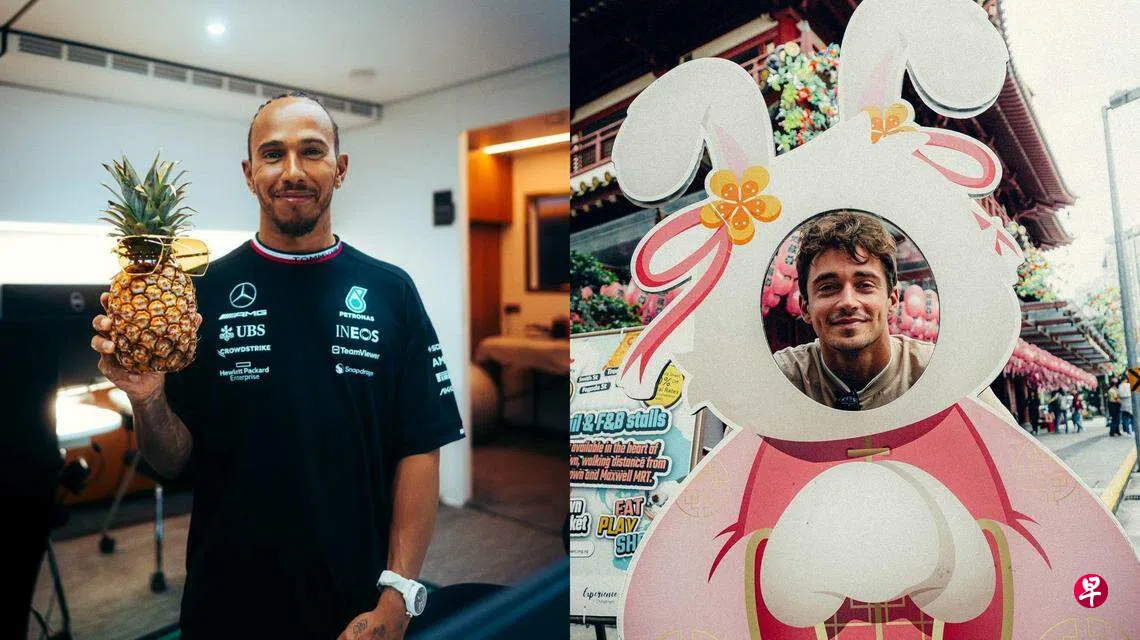 哈密尔顿祭出黄梨,勒克莱尔则是到牛车水打卡,并在佛牙寺旁龙华院的这个兔子照相区旁拍照,让不少网民称直呼“可爱”。