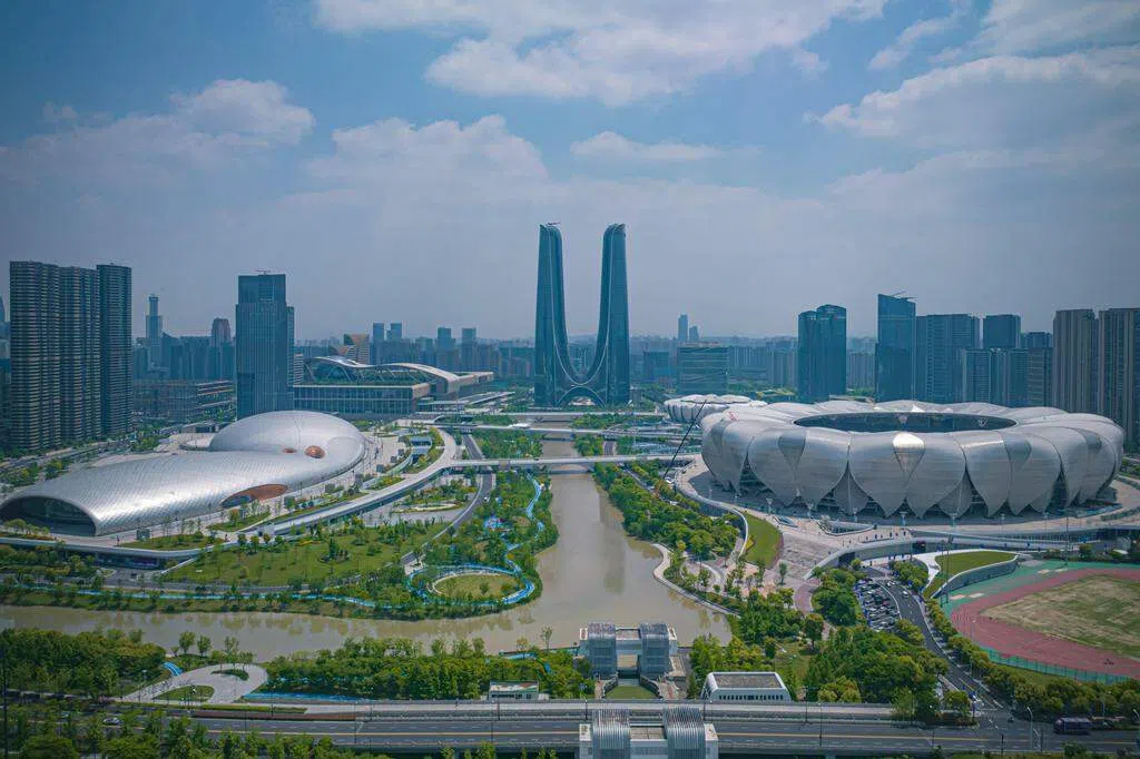 位于杭州滨江区钱塘江畔的杭州奥体中心体育场,是杭州亚运会和亚残运会开闭幕式的承办场馆,也是“运动之母”田径赛的举办场地,因为它的造型也格外靓丽醒目。