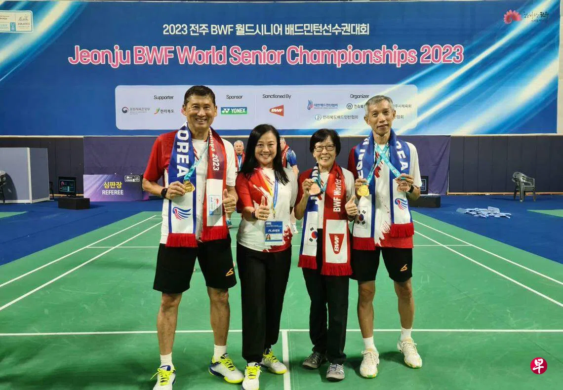 (新加坡讯)尽管年事已高,但符观辉和沈掁全依然精神矍铄,他们在韩国全州举行的世界乐龄羽毛球锦标赛男子65岁以上组,获得二金一铜,取得自2007年以来的最好成绩。我国当时的成绩是55岁以上组男单铜牌。