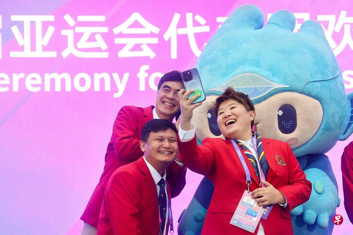 新加坡代表团的选手和工作人员已陆续抵达中国,准备参加来临的杭州亚运会。他们出席星期四(9月21日)在亚运村举行的欢迎仪式,团长许坤德博士盼我国选手展现出最好的自己。