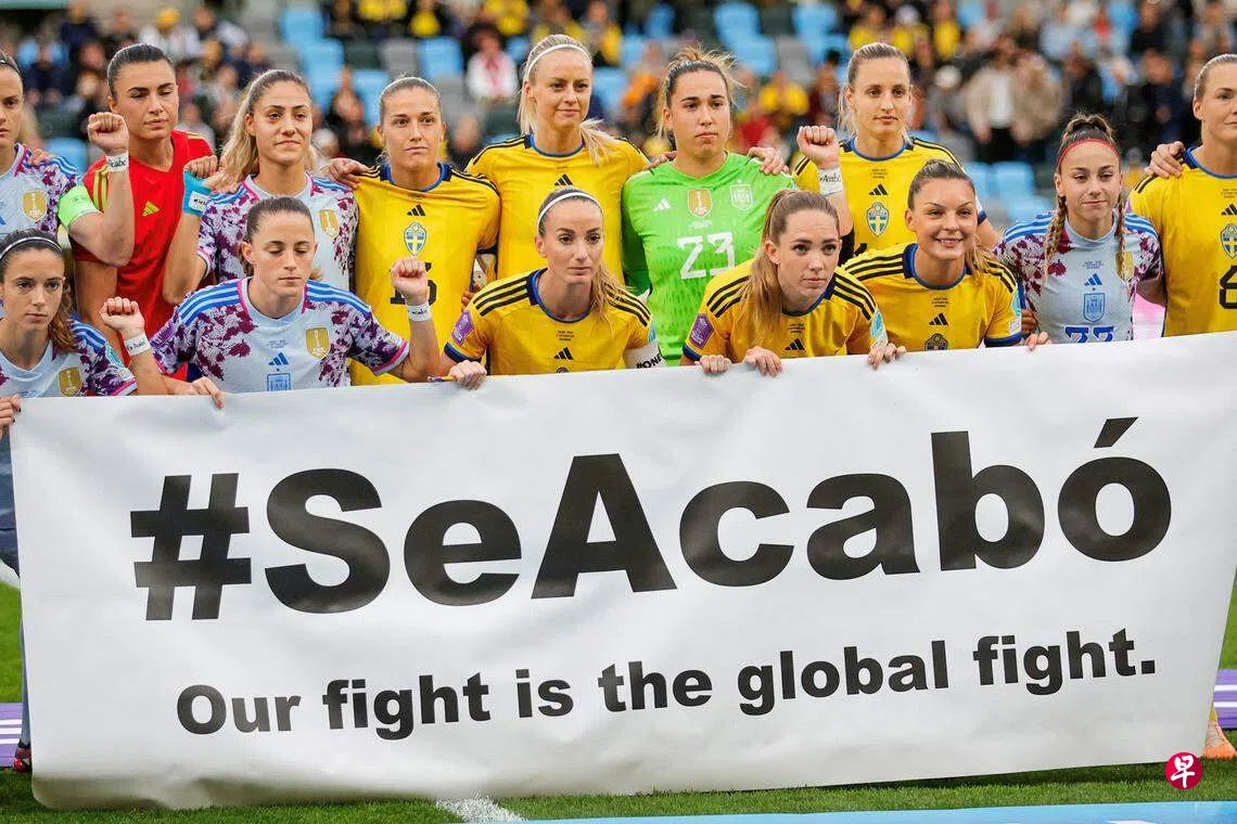 (哥登堡综合电)女子足球界对于性别平权的斗争,在西班牙足总前会长卢比亚莱斯(Rubiales)下台后依旧延续。西班牙女足在赢得世界杯后的首场比赛,和瑞典球员在赛前共举“到此为止了”(西班牙语“Se Acabo”)横幅,向全世界传达这个重要讯息。