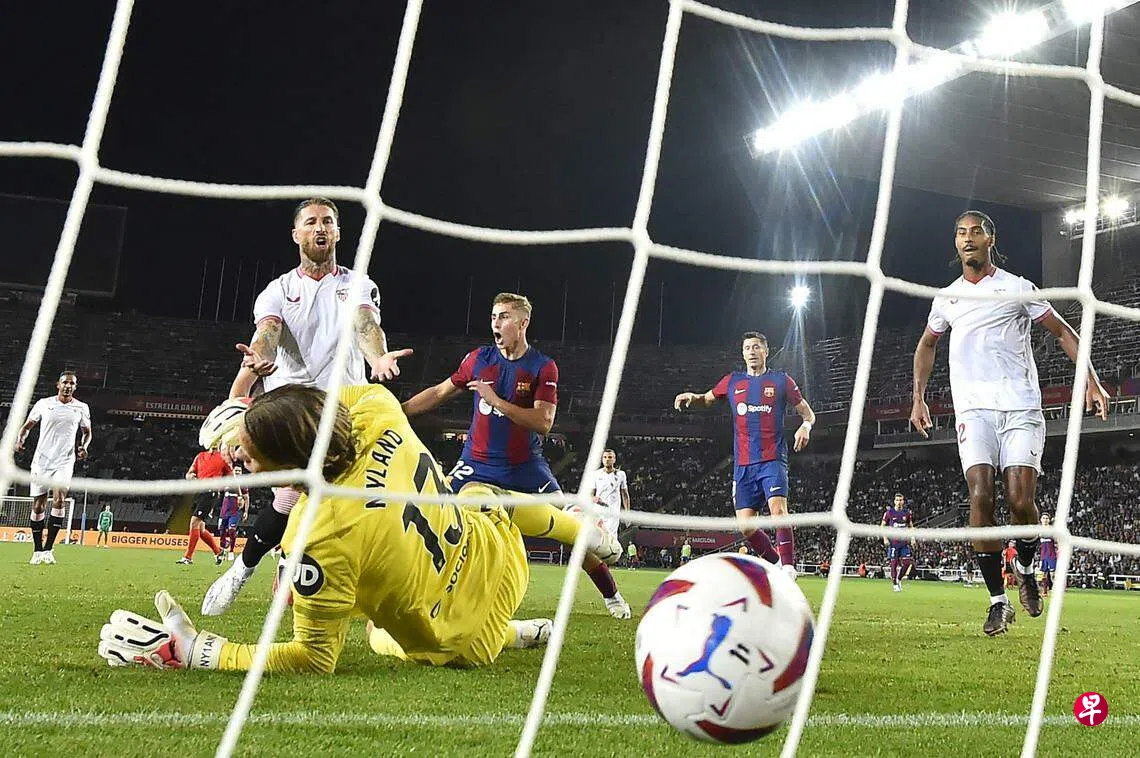 前皇家马德里(Real Madrid)和巴黎圣日耳曼(PSG)后卫拉莫斯转投塞维利亚,自2020年以来再次对阵宿敌巴塞罗那。第76分钟,他在禁区试图挡出16岁小将亚马尔(Yamal)的头球攻门,却将球送入自家龙门,让巴塞罗那取得胜利。
