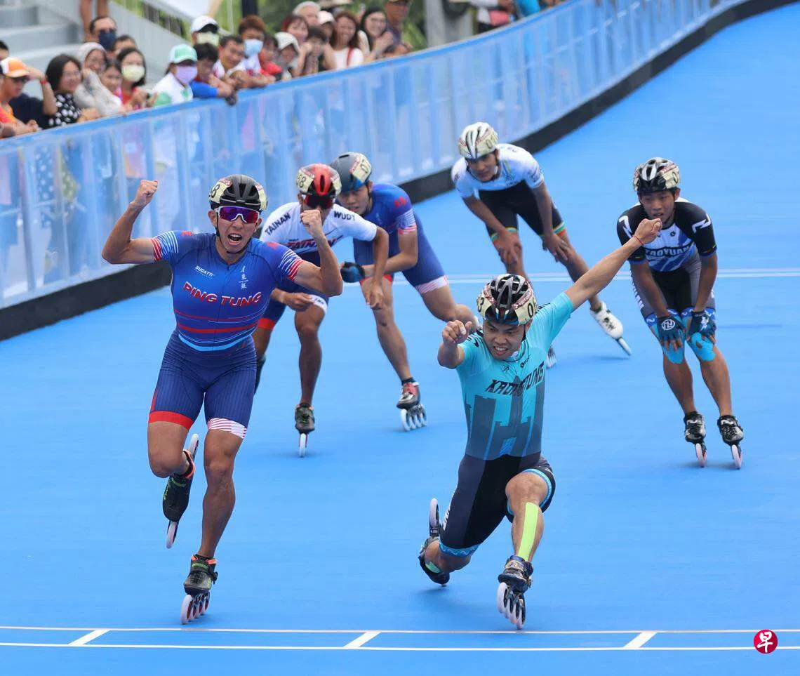 (台南综合电)在杭州亚运会中上演“压线劈腿”逆转摘金的台湾轮滑选手黄玉霖,星期五(10月13日)竟在台湾全运会以同样方式落败。他在终点线前举起双手提前庆祝,结果被亚运会夺金队友赵祖政超越丢冠。