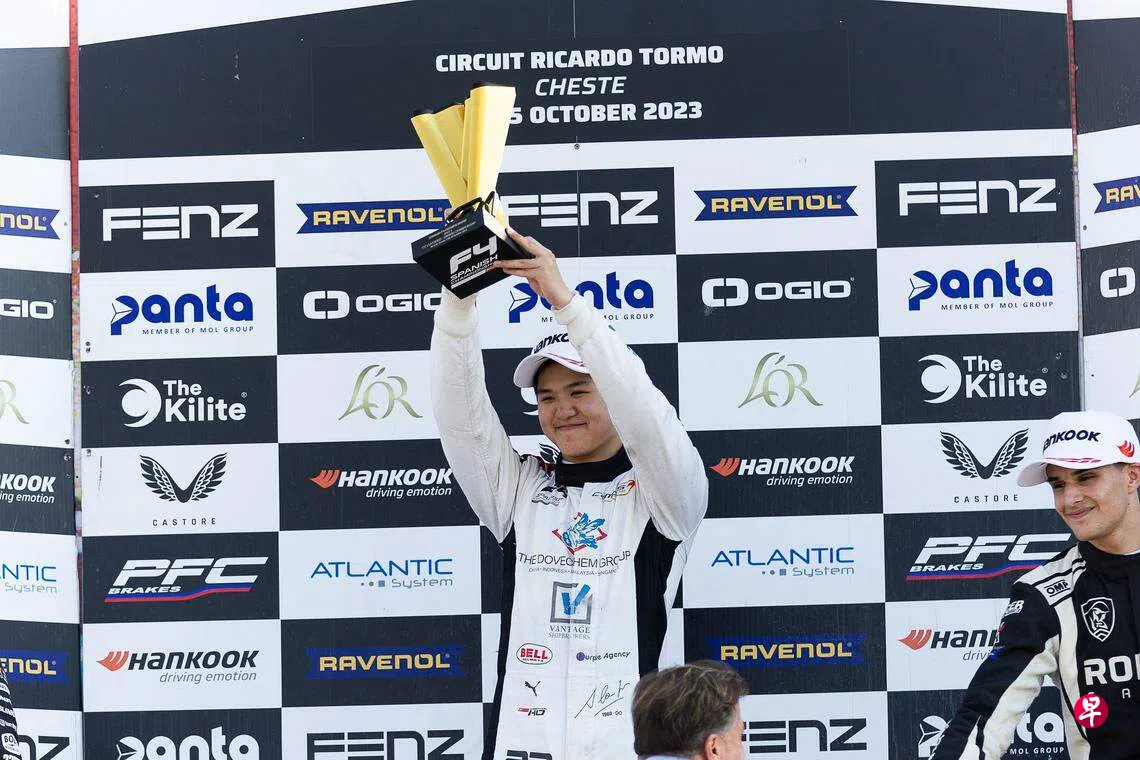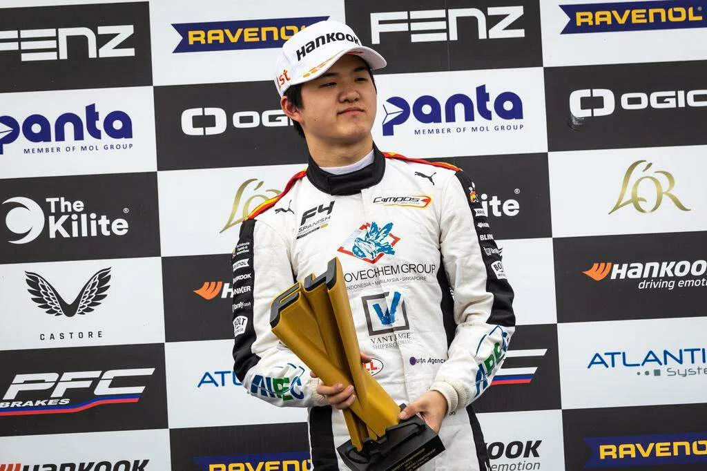 我国16岁少年车手何宗宪上星期天(10月15日)在四级方程式赛车(F4)西班牙锦标赛中夺得他今年的第二个冠军,升至车手积分榜第二位。下赛季他将征战更高级别的Eurocup-3赛事。