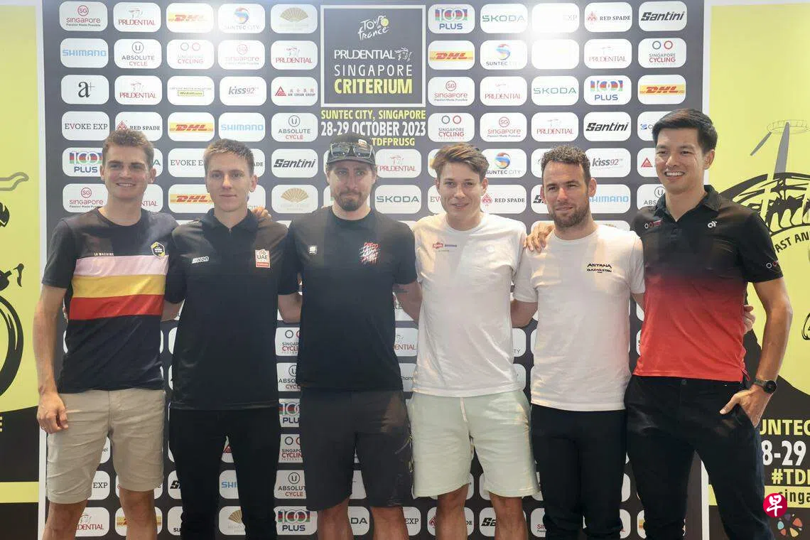 第二届环法保诚保险新加坡绕圈赛在星期六(10月28日)和星期天(29日)进行,不过顶级车手只会在星期天下午亮相,包括冲刺王传奇卡文迪许(Cavendish)和两届环法总冠军波加查(Pogacar)等在内的脚踏车车手出席了赛前记者会,畅谈他们对狮城和这项赛事的期待。