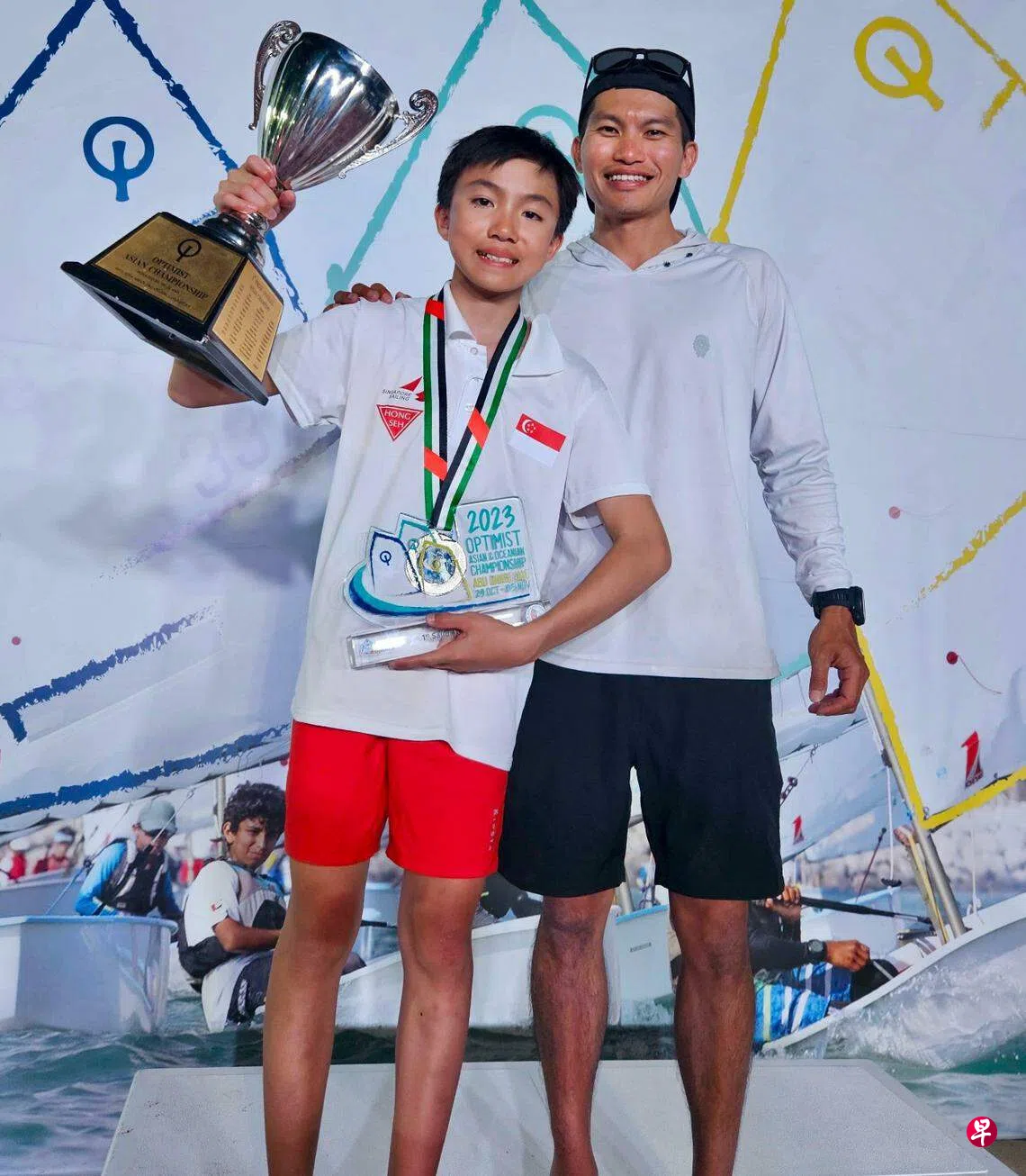 我国13岁帆船小将谢汉伟在阿布扎比举行的2023年乐观者型帆船亚太锦标赛中逆转称王。
