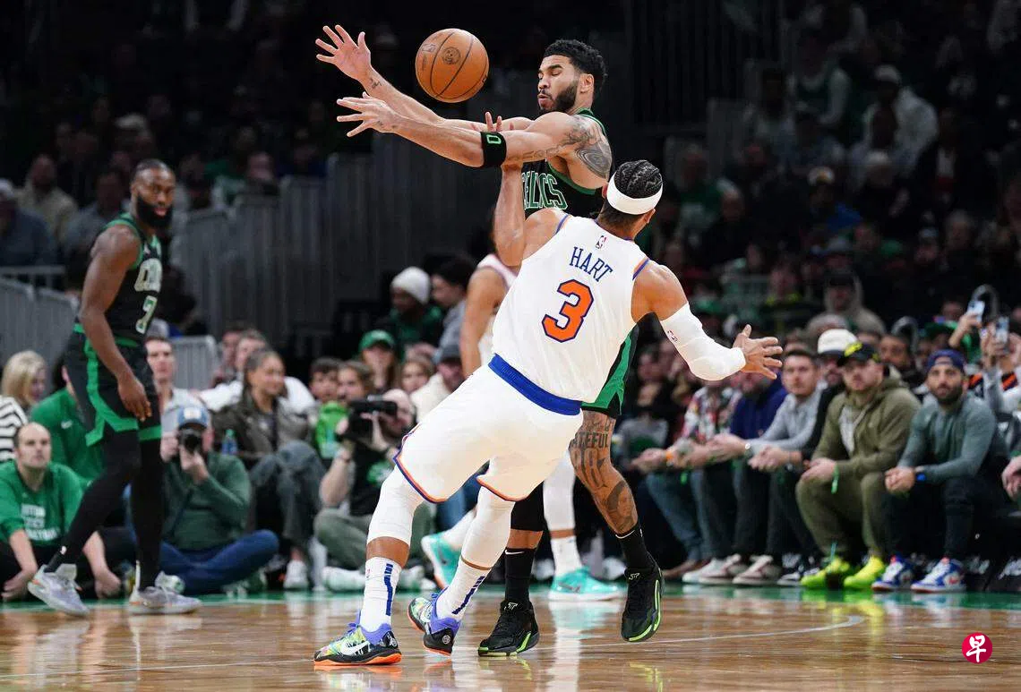 美国职业篮球联赛(NBA)星期二(11月14日)继续进行,“绿衫军”凯尔特人坐镇主场迎战尼克斯。首节比赛,凯尔特人全民皆兵,而尼克斯仅靠控卫布伦森(Brunson)独挑大梁,绿衫军25比24领先一分进入第二节。次节前锋兰德尔(Randle)状态回暖,尼克斯在外线不断下起三分雨,尼克斯53比52反超比分进入下半场。