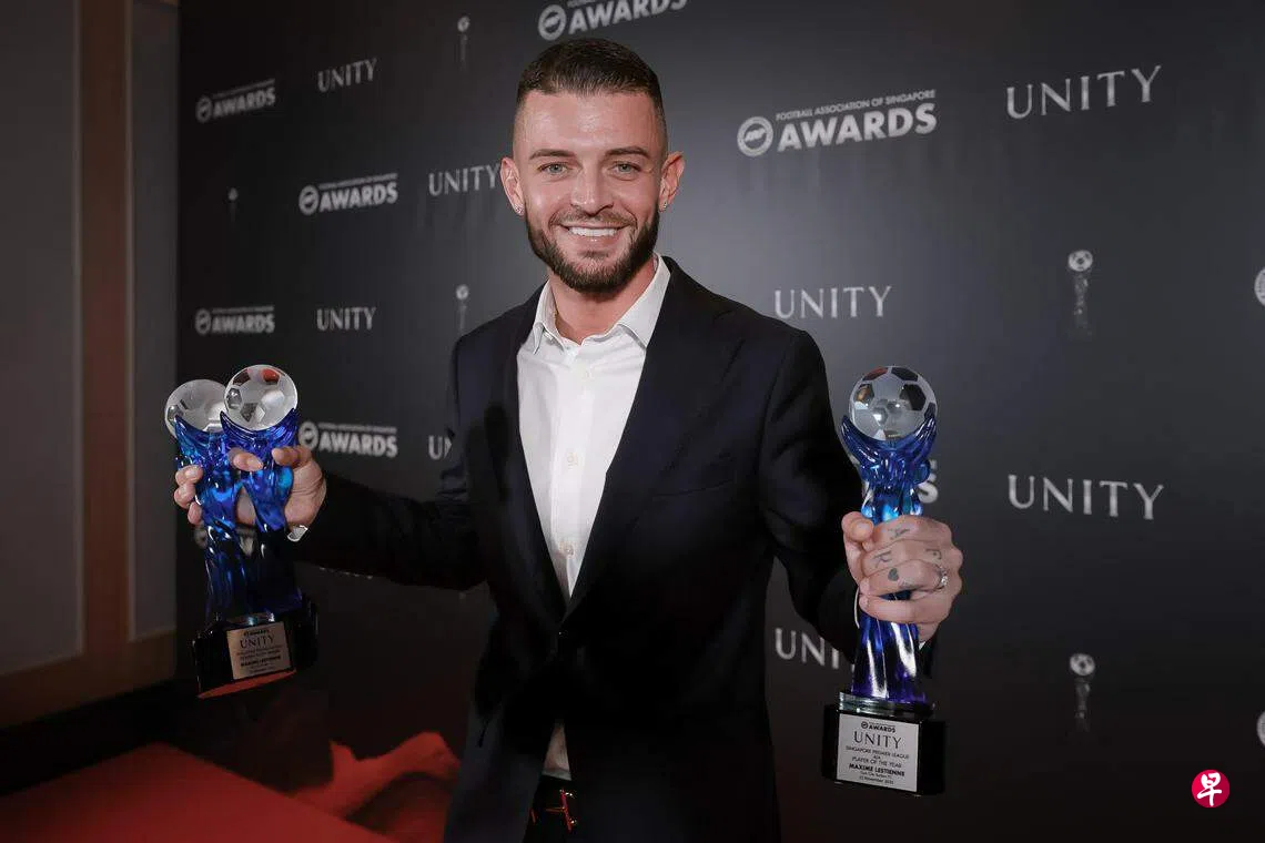 新加坡足球总会星期四(11月23日)晚上在新加坡乌节大酒店举行年度颁奖典礼。狮城水手(Lion City Sailors)比利时边锋莱斯蒂耶纳(Lestienne)揽下包括最佳男球员在内的三个新超联赛奖项,风光无比。新潟阿比雷斯(Albirex Niigata)日本前锋北原佳奈则获得最佳女球员奖。