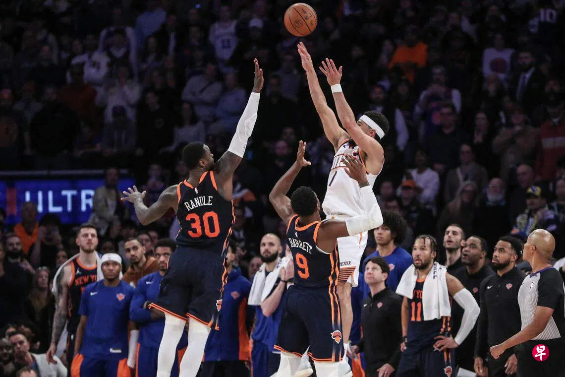 (纽约综合电)凭借后卫布克(Booker)在比赛最后时刻的三分命中,菲尼克斯太阳(Phoenix Suns)星期一(11月27日)客场116比113战胜纽约尼克斯(New York Knicks),豪取七连胜。