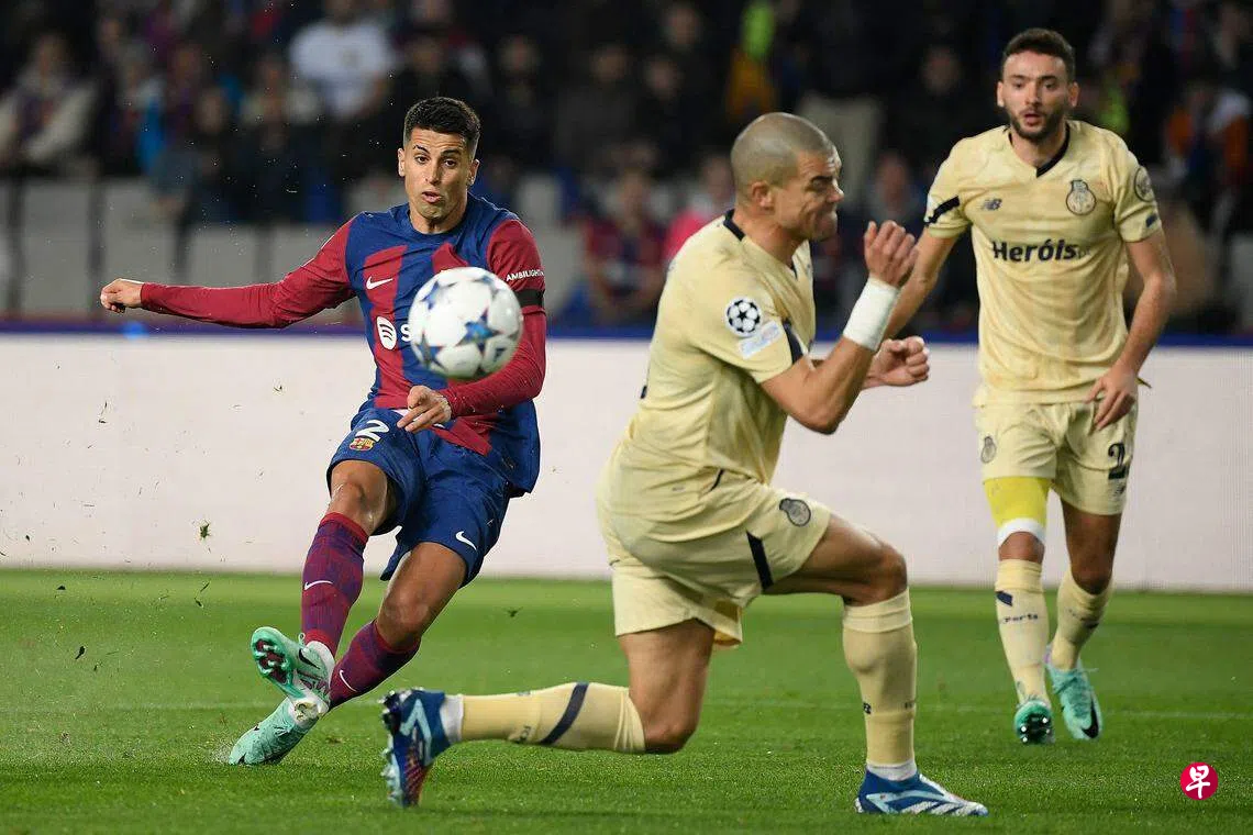 H组的巴塞罗那主场2比1逆转拿下葡萄牙的波尔图(Porto)。波尔图的巴西边锋佩佩(Pepe,和同队的葡萄牙老将后卫佩佩同名)在第30分钟首开纪录,不过巴塞的葡萄牙球员坎塞洛(Cancelo)两分钟后,左侧漂亮突破并扳平比分。坎塞洛第57分钟再助攻给另一位葡萄牙人费利什(Felix),让巴塞罗那反败为胜。