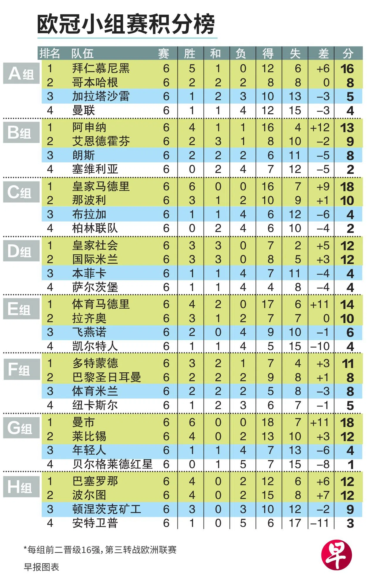欧洲冠军联赛小组赛本地时间星期四(12月14日)凌晨收官,16强全部出炉。在最受瞩目的死亡之组F组中,法甲豪门巴黎圣日耳曼(Paris St.Germain)凭一场和局顺利搭上16强末班车;意甲传统劲旅体育米兰(AC Milan)赢球却遗憾出局。