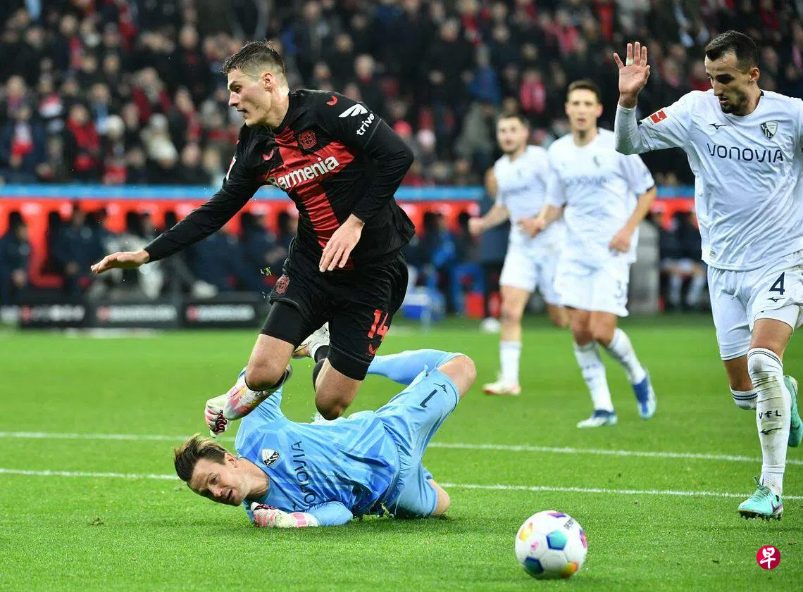 (沃尔夫斯堡法新电)莱沃库森(Leverkusen)在本地时间星期四(12月21日)凌晨举行的德甲联赛中以4比0横扫波鸿(Bochum),前锋希克(Schick)上演帽子戏法,协助球队以不败之姿领跑并进入冬歇期。上届冠军拜仁慕尼黑(Bayern Munich)则以2比1战胜沃尔夫斯堡(Wolfsburg),继续以四分之差紧追其后。