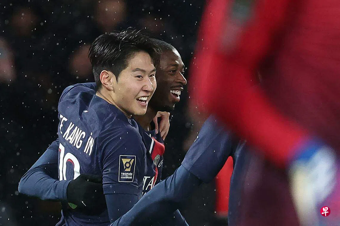 在星期四(1月4日)凌晨举行的这场法国超级杯赛中,巴黎圣日耳曼以上季法甲冠军的身份与上季法国杯冠军图卢兹(Toulouse)争冠,出征亚洲杯前为巴黎圣日耳曼出战最后一场比赛的韩国中场李刚仁,在开赛第三分钟就先声夺人。他在登贝莱(Dembele)送出助攻后插入禁区推射破门,助大巴黎取得梦幻般的开局。