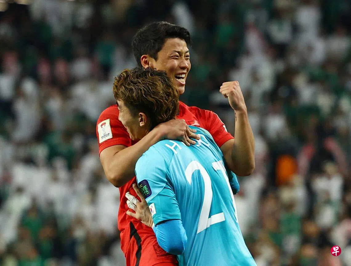 韩国此前在小组赛两度于比赛尾声进球,他们这次又将好戏留到最后,在末段攻势不断。此前有一记头球击中横梁的替补中锋曹圭成,在完场补时第九分钟接到薛英佑的头球助攻,接力将球顶入网中,让韩国以1比1惊险扳平比分,抵消了沙特前锋拉迪夫(Radif)在中场休息被换上后仅33秒的单刀进球。