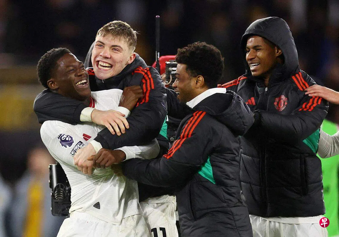 (伦敦综合电)“红魔”曼彻斯特联队(Manchester United)在星期五(2月2日)凌晨的英超客场赛中两度领先两球的情况下被追平,最终凭小将迈努(Mainoo)第97分钟的绝杀球以4比3险胜狼队(Wolves)。