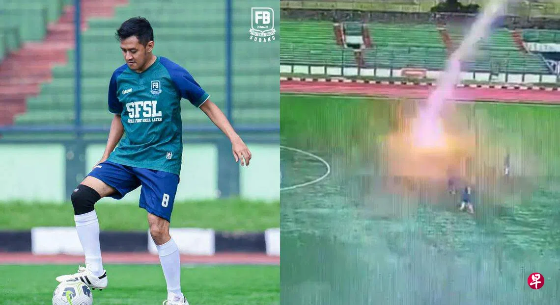 (万隆综合电)印度尼西亚足坛日前发生一宗恐怖意外,一名球员在场上比赛时突然被一道闪电击中,不幸丧命。