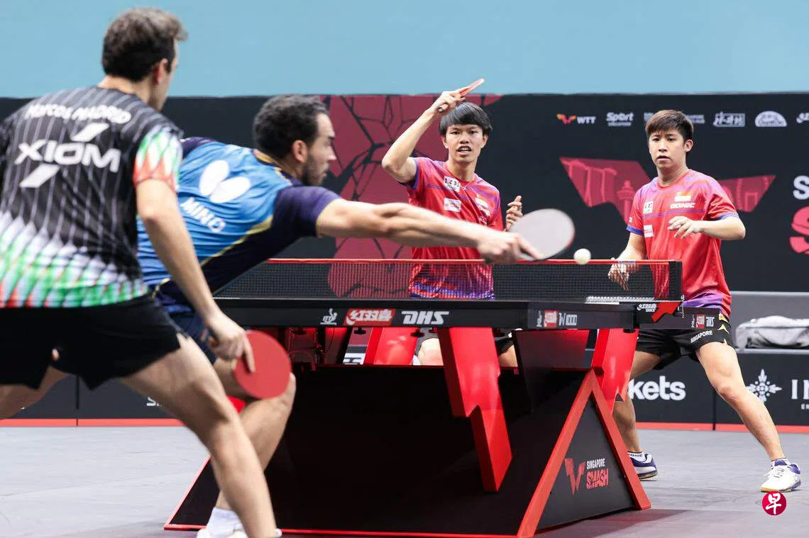 新加坡代表星期一(3月11日)在华侨银行室内体育馆进行的世界乒乓球职业大联盟(WTT)新加坡大满贯赛中,派出四个单打和四支双打组合征战,男双蔡劭恒/陈俊是唯一晋级下一轮的队伍。