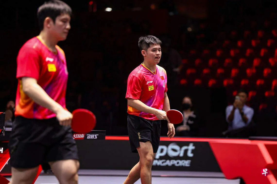 在华侨银行室内体育馆举行的世界乒乓球职业大联盟(WTT)新加坡大满贯正赛未过半,单打赛场频现突破,冷门不断。中国乒乓球选手林诗栋(世界第18)星期二(3月12日)在男单32强赛以3比1(11比6、11比2、9比11、11比6)战胜队友、卫冕冠军樊振东(世界第一),马龙(中国,世界第三)2比3(11比6、9比11、11比4、10比12、5比11)不敌弗朗西斯卡(德国,世界第25)。