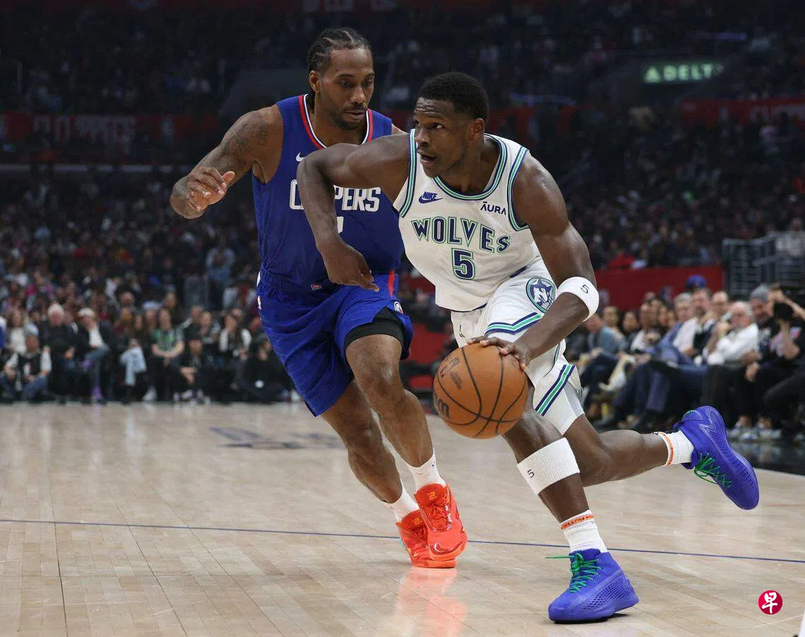(洛杉矶综合电)明尼苏达灰狼(Minnesota Timberwolves)星期三(3月13日)在落后多达22分的情况下,客场以118比100逆转战胜洛杉矶快艇(LA Clippers)。快艇主力伦纳德(Leonard)遭遇背部痉挛伤病,首节结束后便退出比赛。全场砍下37分的灰狼主力爱德华兹(Edwards)赛后称,伦纳德不在场让他越打越顺。