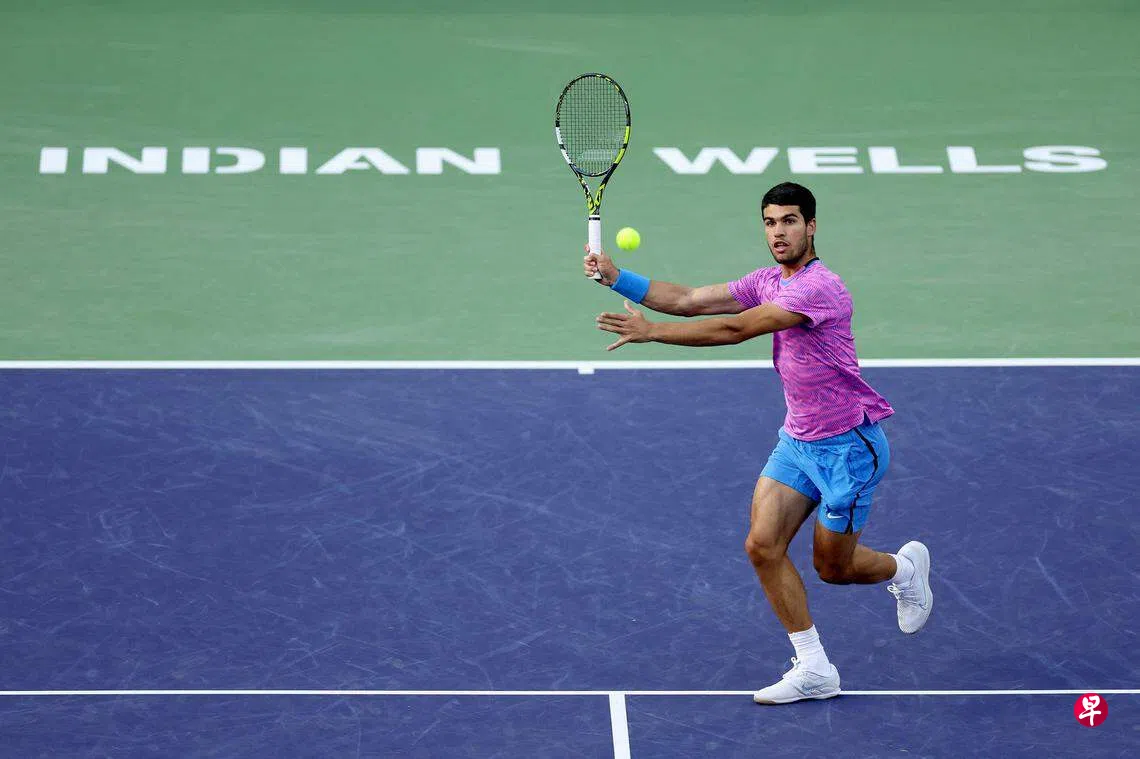 (印第安韦尔斯路透电)卫冕冠军西班牙选手阿尔卡拉斯(Alcaraz,世界第二)本地时间星期天(3月17日)上午在美国印第安韦尔斯网球大师赛男单半决赛,以1比6、6比3、6比2逆转战胜意大利选手辛纳(Sinner,世界第三)。阿尔卡拉斯将与俄罗斯选手梅德韦杰夫(Medvedev,世界第四)争夺男单冠军。