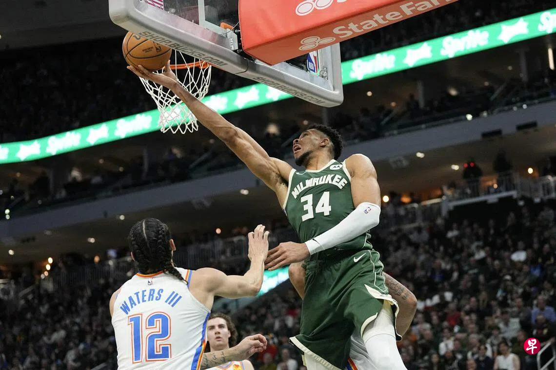 (洛杉矶综合电)“字母哥”安特托孔波(Antetokounmpo)在本地时间星期一(3月25日)上午的美国职业篮球赛(NBA),率领密尔沃基公鹿(Milwaukee Bucks)以118比93击败俄克拉荷马城雷霆(Oklahoma City Thunder);洛杉矶快艇(Los Angeles Clippers)则以107比121败给费城76人(Philadelphia 76ers),哈登(Harden)吞下面对旧主的首场败仗。