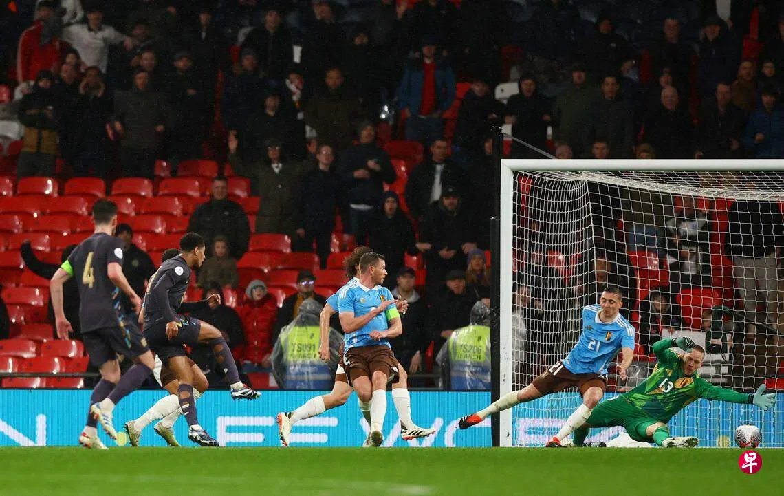 (伦敦综合电)尽管在上周末于温布里球场0比1败给巴西后,又接获更多球员伤退的坏消息,但“三狮军团”英格兰仍在本地时间星期三(3月27日)凌晨的另一场国际友谊赛中沉着迎战,凭贝林厄姆(Bellingham)在第95分钟的进球,主场以2比2踢和比利时。