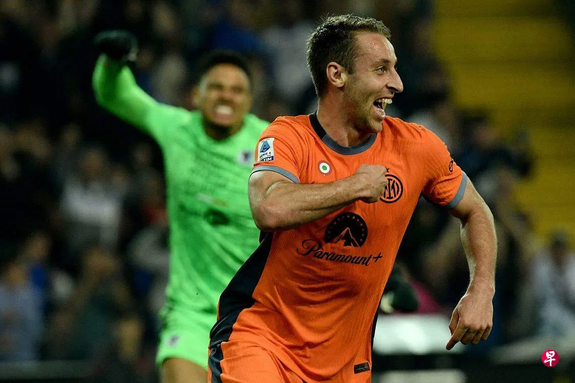 (乌迪内路透电)国际米兰(Inter Milan)在星期一(4月8日)的意大利甲级联赛上,凭借弗拉泰西(Frattesi)在伤停补时的进球,以2比1逆转击败乌迪内斯(Udinese),朝夺取意甲冠军又迈进一大步。
