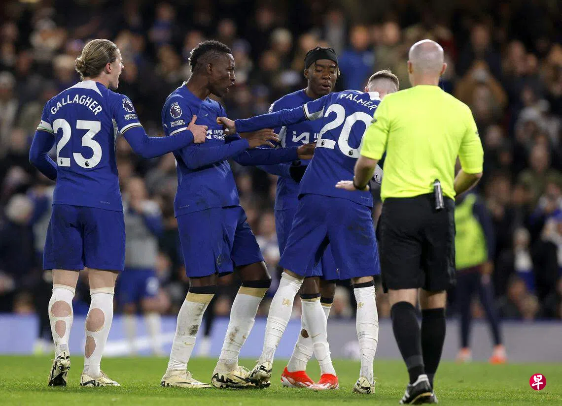 蓝军在第61分钟获得罚球,但马杜埃凯(Madueke)及杰克逊竟然为了罚球权起争执。两人争从古斯托(Gusto)手中得球,最后球由马杜埃凯得到,杰克逊心生不满,老将蒂亚戈·席尔瓦(Thiago Silva)上前调停。