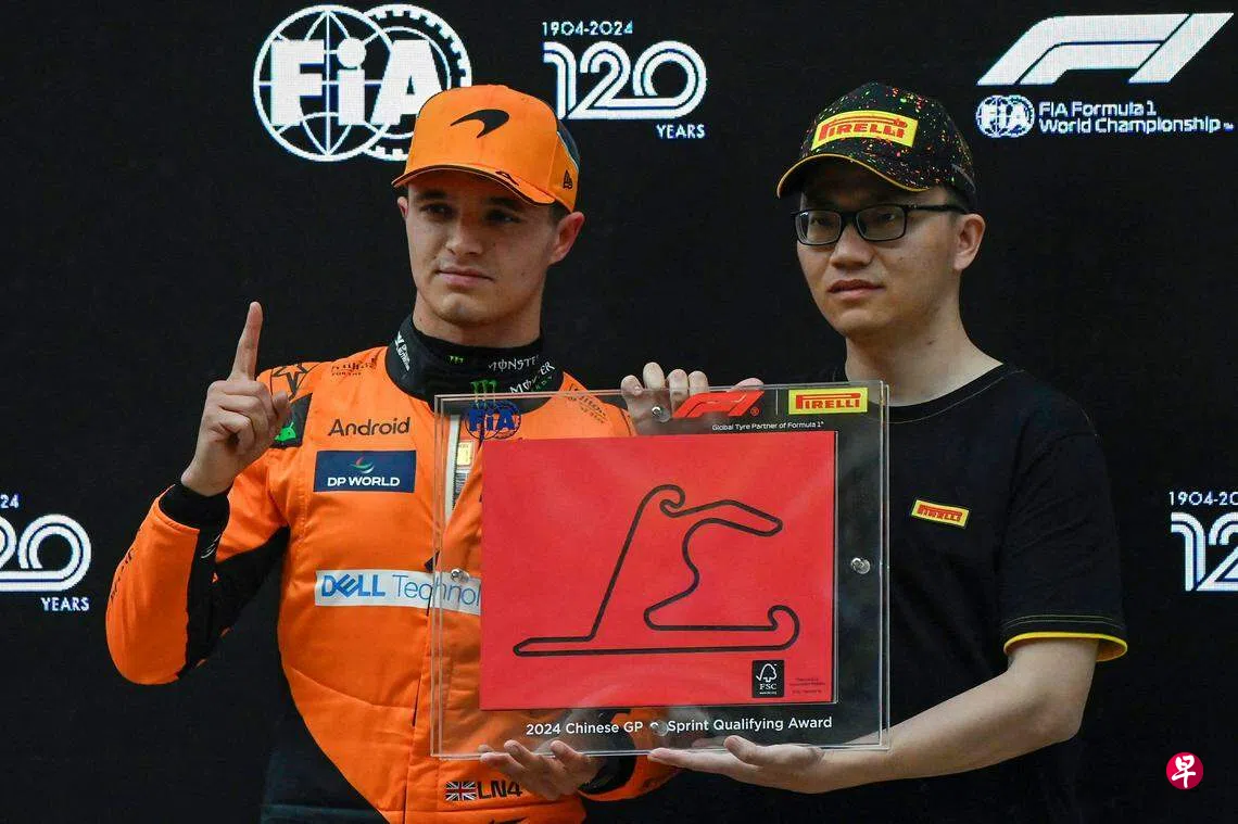(上海综合电)中国F1大奖赛阔别五年回归上海,迈凯伦车手诺里斯(Norris)在星期五(4月19日)混乱的冲刺排位赛中夺下杆位,主场作战的索伯车手周冠宇则排名第10。