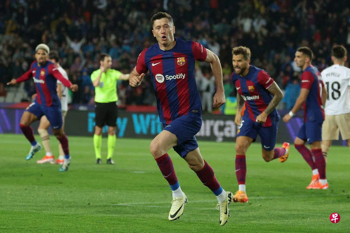 (巴塞罗那综合电)凭借前锋莱万多夫斯基(Lewandowski)在下半场上演帽子戏法,巴塞罗那(Barcelona)在本地时间星期二(4月30日)凌晨的西甲联赛以4比2逆转战胜巴伦西亚(Valencia)。