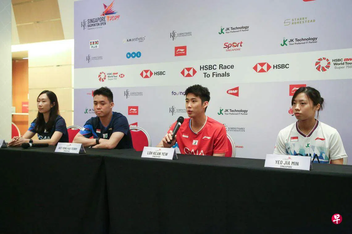 新加坡四名球员星期一(5月27日)出席在新加坡体育城举行的记者会,骆建佑、杨佳敏、许永凯和陈薇涵都对即将开打的新加坡羽毛球公开赛(超级750赛)感到期待。