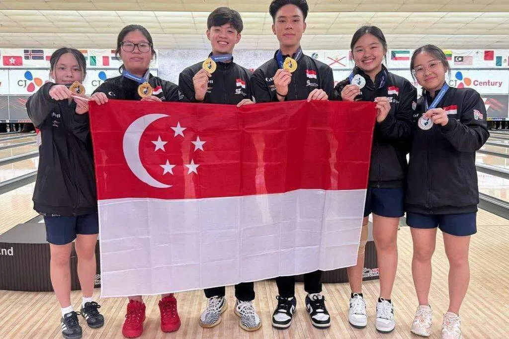 第23届保龄球亚青赛星期六(6月22日)进行最后一天赛程,我国小将骆盈秀和陈玮宁闯保龄球亚青赛女子高手项目,包揽冠亚军,再为新加坡添一金一银。我国健儿在这项赛事共收获六金四银三铜,登顶奖牌榜首。