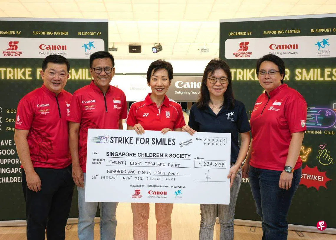 新加坡保龄球联合会与佳能(CANON)联手,通过Strike for Smiles筹款活动,为新加坡儿童会晨曦儿童之家(Sunbeam Place at Singapore Children’s Society)和新加坡团队基金(One Team Singapore Fund)筹得4万元善款。