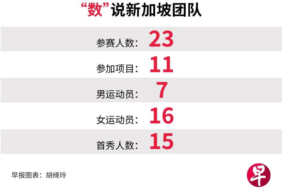 但我国这次只参加11个运动项目,比上届少一个。在三年前的东京奥运会上,新加坡运动员在田径、游泳、乒乓球、羽毛球、帆船、击剑、马术、赛艇、射击、跳水、公开水域游泳和体操项目都有选手参赛,但本届不会有代表出战跳水、公开水域游泳和体操,取而代之的是高尔夫球和皮划艇静水。其中,19岁的陈暄尹将会是我国在奥运会高尔夫球项目中历来的首名代表。