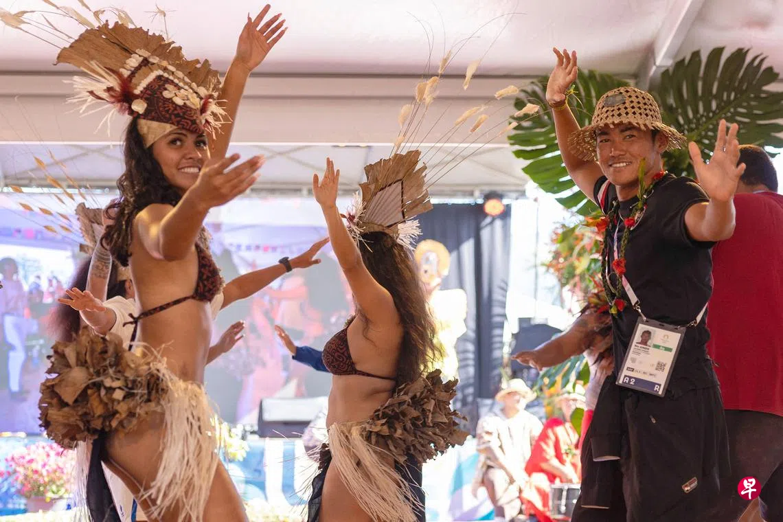 (大溪地路透电)冲浪奥运选手齐聚法国大溪地(Tahiti)岛庆祝巴黎奥运会的盛大开幕,在阳光、鼓声与舞蹈中于新加坡时间星期六(7月27日)凌晨举行欢迎仪式。