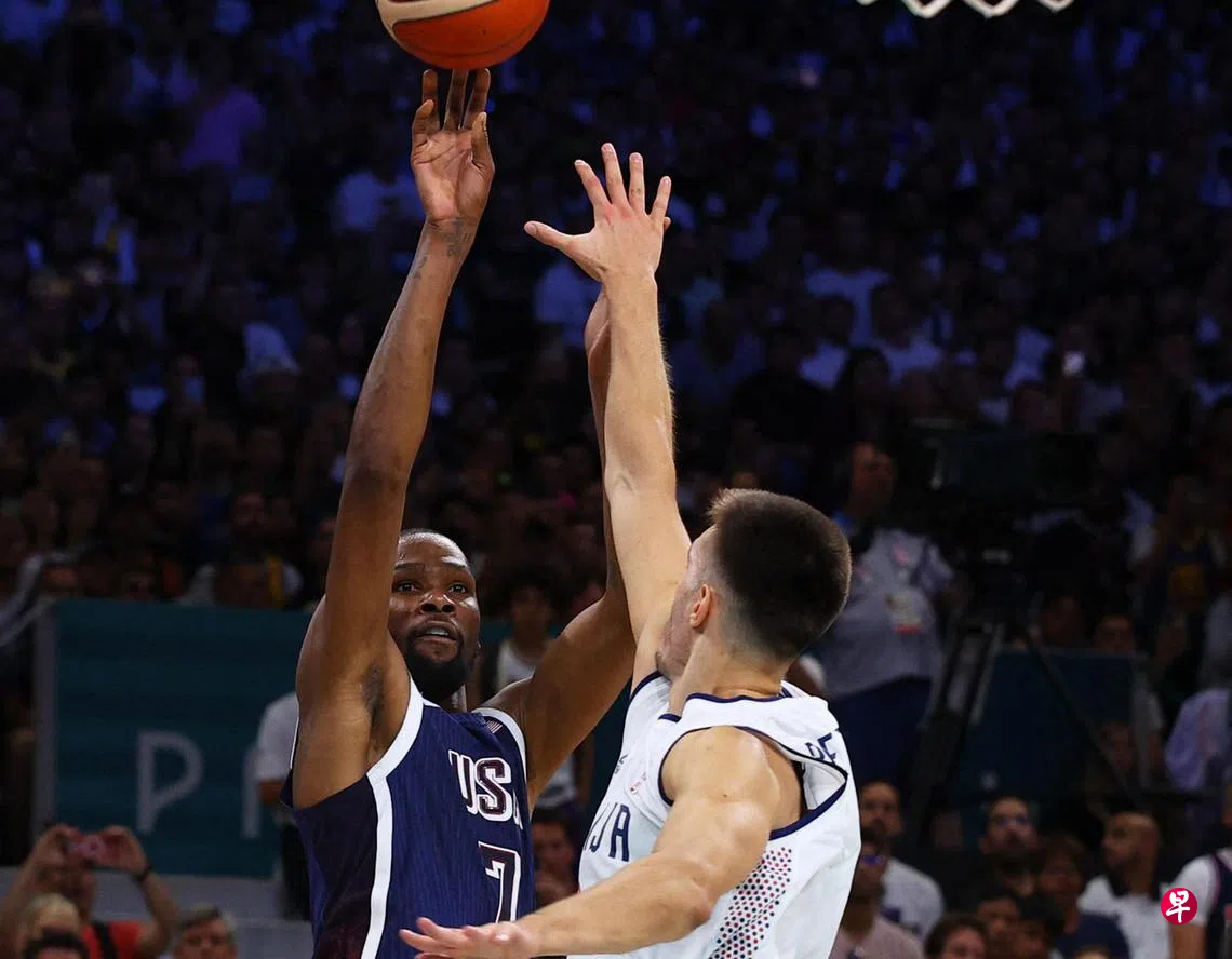 (里尔综合电)卫冕冠军美国男篮在星期天(7月28日)的2024年巴黎奥运会男篮C组序幕战以110比84击败塞尔维亚打响首炮,之前受伤的球星杜兰特(Durant)伤愈复出,并拿出近乎完美的表现。