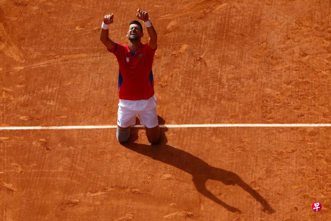 37岁的塞尔维亚网球传奇乔科维奇(Djokovic)在新加坡时间星期天(8月4日)晚以7比6(7比3),7比6(7比2)险胜21岁西班牙好手阿尔卡拉斯(Alcaraz),夺得巴黎奥运网球男单金牌。
