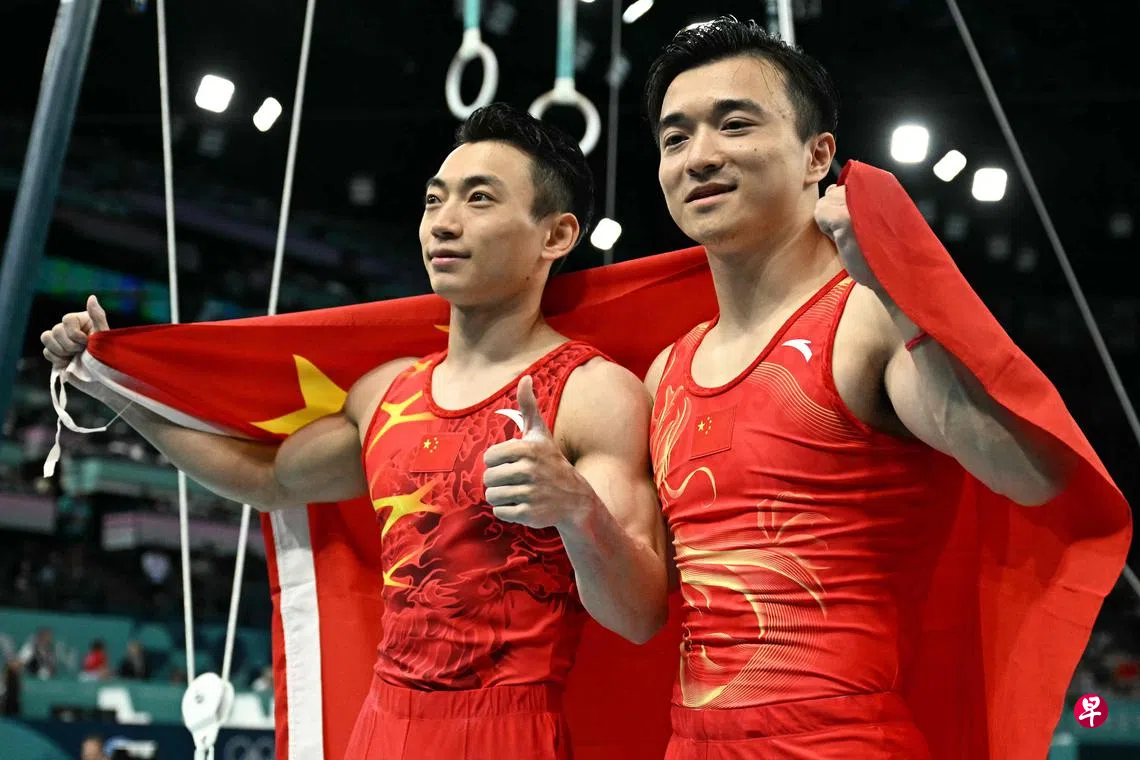 (巴黎综合电)中国竞技体操队星期天(8月4日)在巴黎奥运会男子吊环决赛包揽金银牌。刘洋卫冕成功,摘下体操队本届首金,队友邹敬园得银牌。菲律宾世界冠军尤洛在男子跳马决赛摘金,连续两天进账金牌。