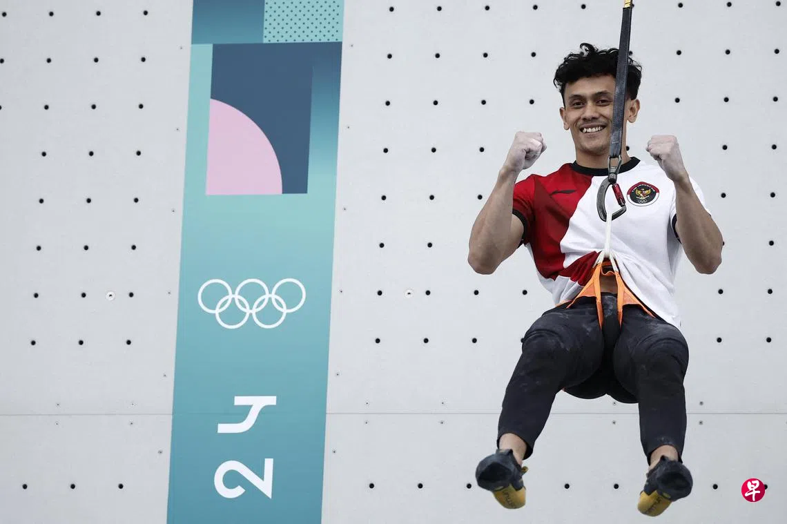 (巴黎综合电)印度尼西亚运动攀岩好手莱昂纳多(Leonardo)星期四(8月8日)在巴黎奥运会男子速度攀岩决赛,力压中国选手伍鹏夺冠,取得印尼在本届奥运的首面金牌。