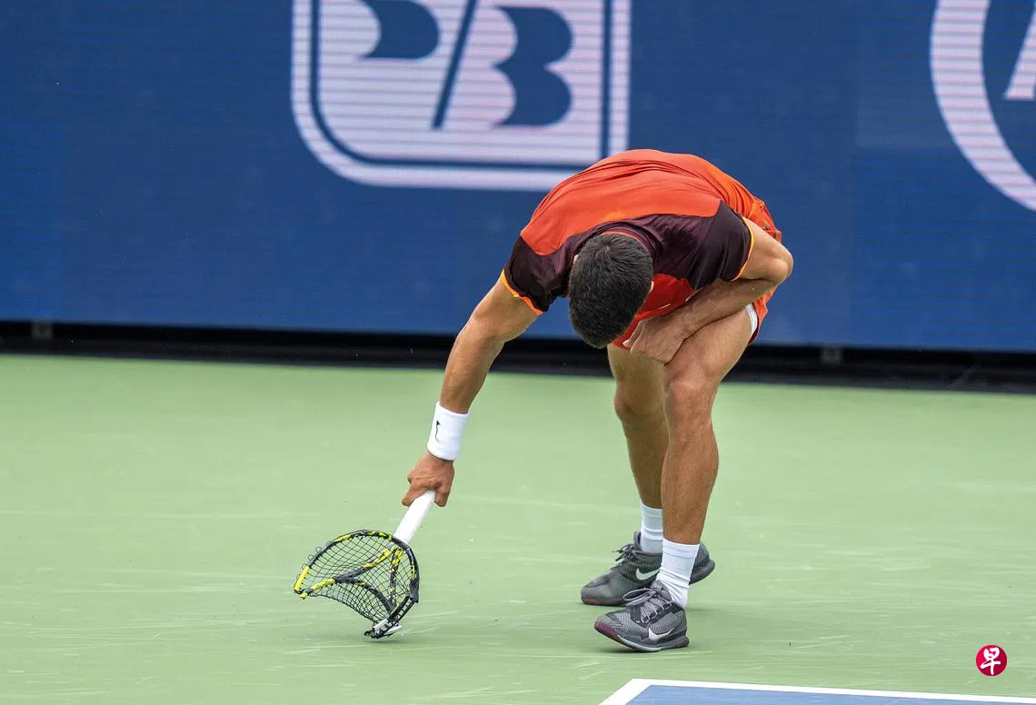 (辛辛那提综合电)西班牙网球名将阿尔卡拉斯(Alcaraz)星期六(8月17日)在辛辛那提大师赛男单32强赛,4比6、7比6(7比5)、6比4遭到法国好手孟菲尔斯(Monfils)逆转。他在比赛中动怒摔拍,更直言这是生涯打得最糟的一场比赛。