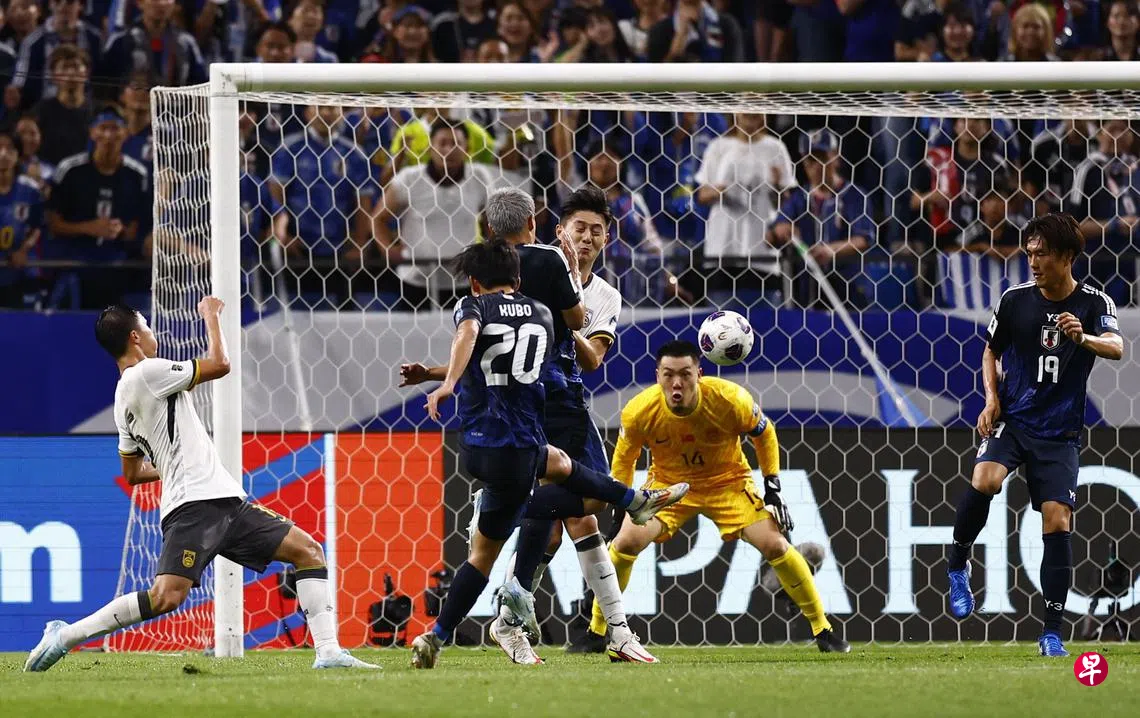 在次圈六场全胜的日本队,在本场C组首轮小组赛中,一开场就控制了比赛节奏,队长远藤航第12分钟在有日本“梅西”之称的久保建英开出左侧角球后,反应最快高高跃起,将球顶入中国队的龙门。